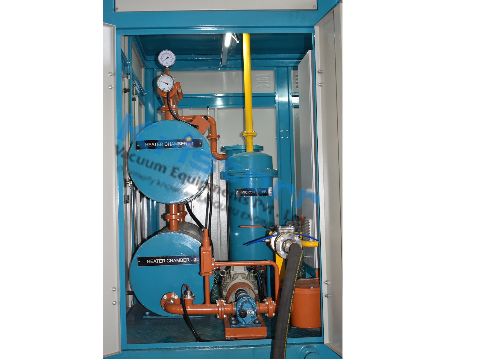 transformer oil regeneration plant for reduce the sulfrer containt from transformer oil. we are deal in all over india The Transformer Evacuation System is designed for the efficient removal of moisture, air, and gases from transformers before filling them with new or filtered oil. This process enhances the dielectric strength of the insulation, ensuring optimal transformer performance and longevity. The system is available in a capacity range of 10 cubic meters per hour to 600 cubic meters per hour and can be either stationary or trolley-mounted for easy mobility. It comes equipped with essential accessories such as a condenser, vacuum hoses, and a digital vacuum meter, ensuring precise and efficient evacuation.